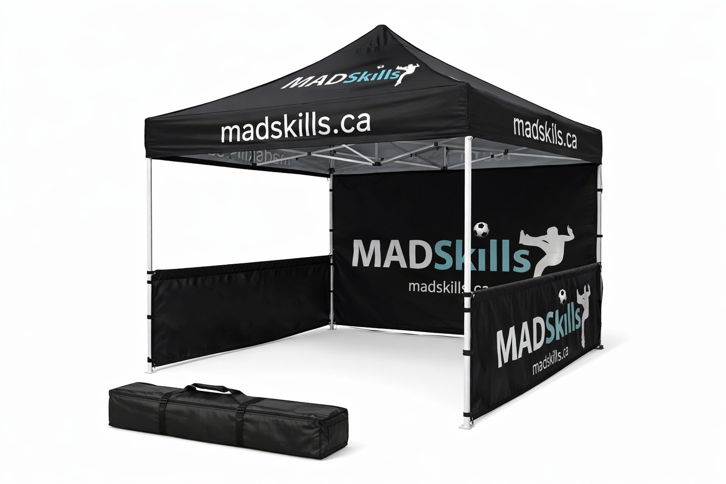 Custom tents sized 3 x 3 meters, complete with design, printing, and a carrying bag.